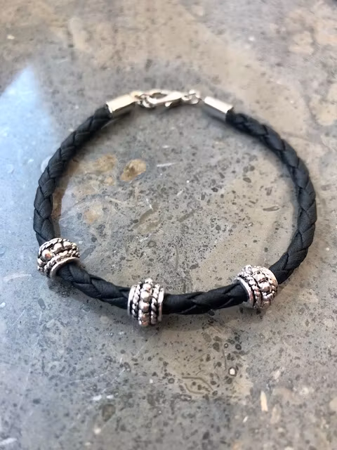 Snyggt läder armband med flätad rem.