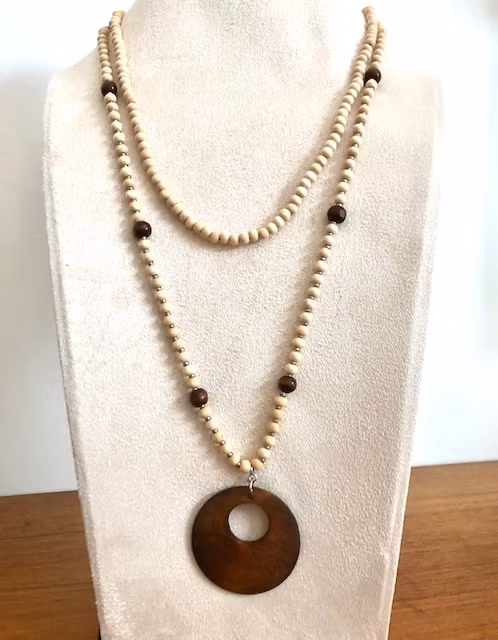 Naturvita träpärlor naturella. Mellanpärlor i galvaniserat tenn.