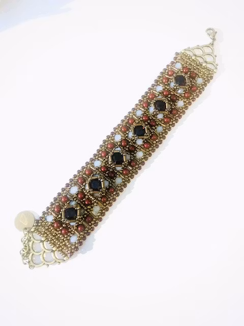 Pärlor i galvaniserat brons, och mjölkvita pärlor.