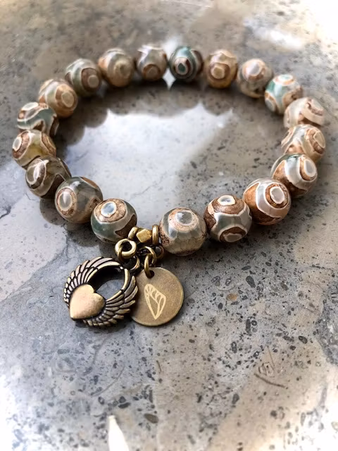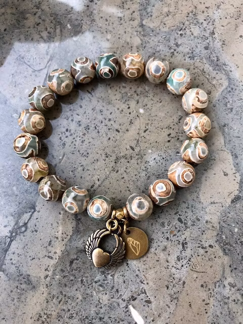 TRUST stretch 300 kr Läckert stretch armband med 10mm DZI pärlor och bronz I lager. Lägg i korgen Lagersaldo: 1 Artikelnummer: 484 Dela Information Läckert stretch armband med 10mm DZI pärlor och bronsStretchBerlocker i bronsPassar storlek 15-17 ( handledsnära på strl 17)Bredd 10mmFärg: Grågrön och brun.